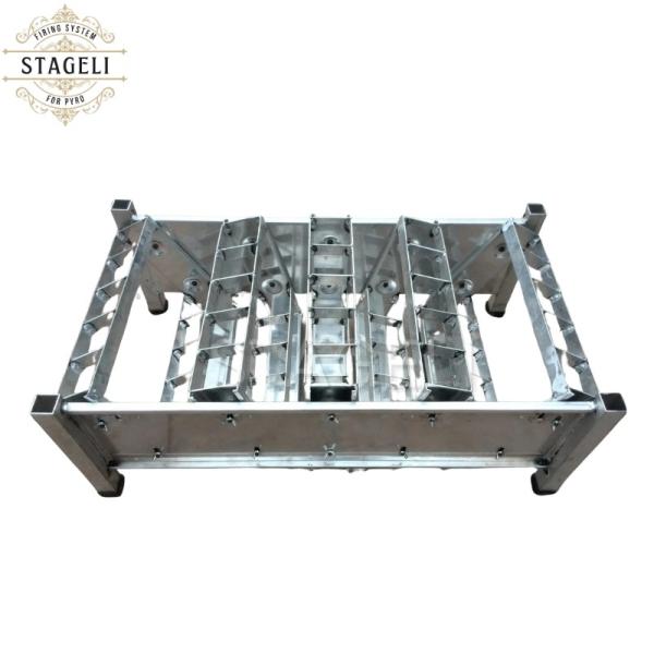 The iron frame is designed to withstand the intense heat and forces generated during the ignition and launching of fireworks, ensuring stability and safety throughout the display. Its sturdy construction provides a reliable platform for positioning fireworks at precise angles and heights for maximum visual impact.